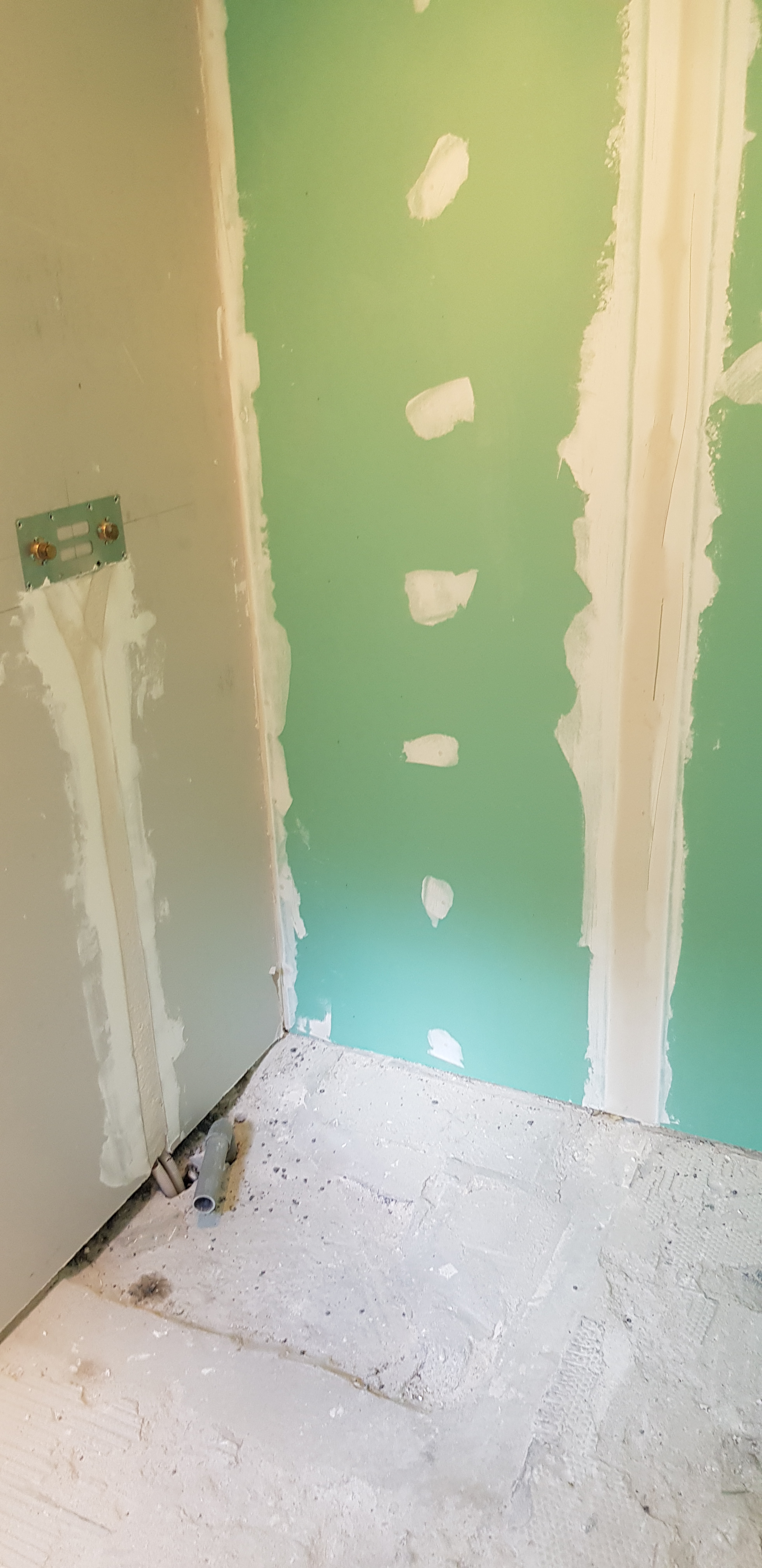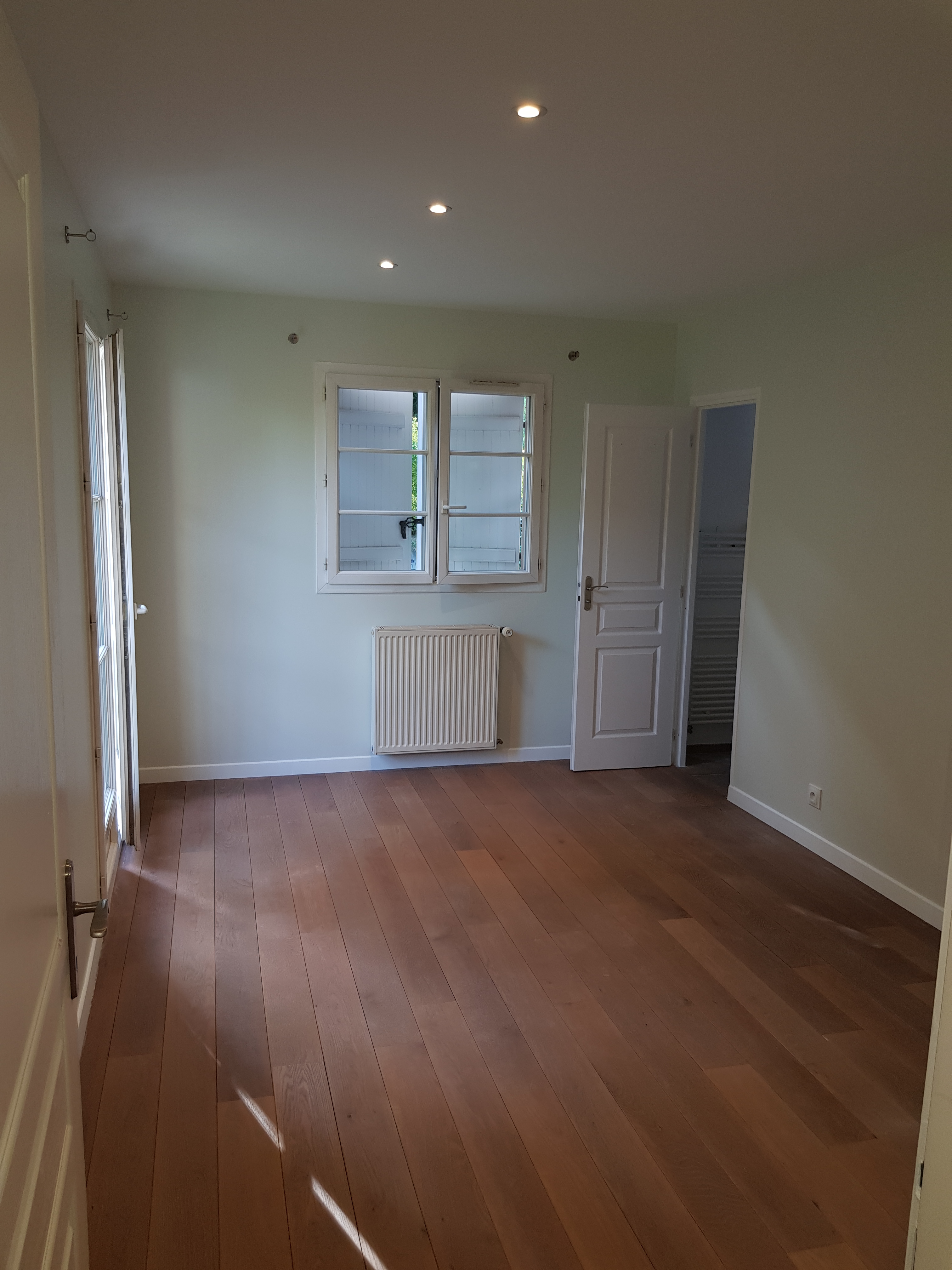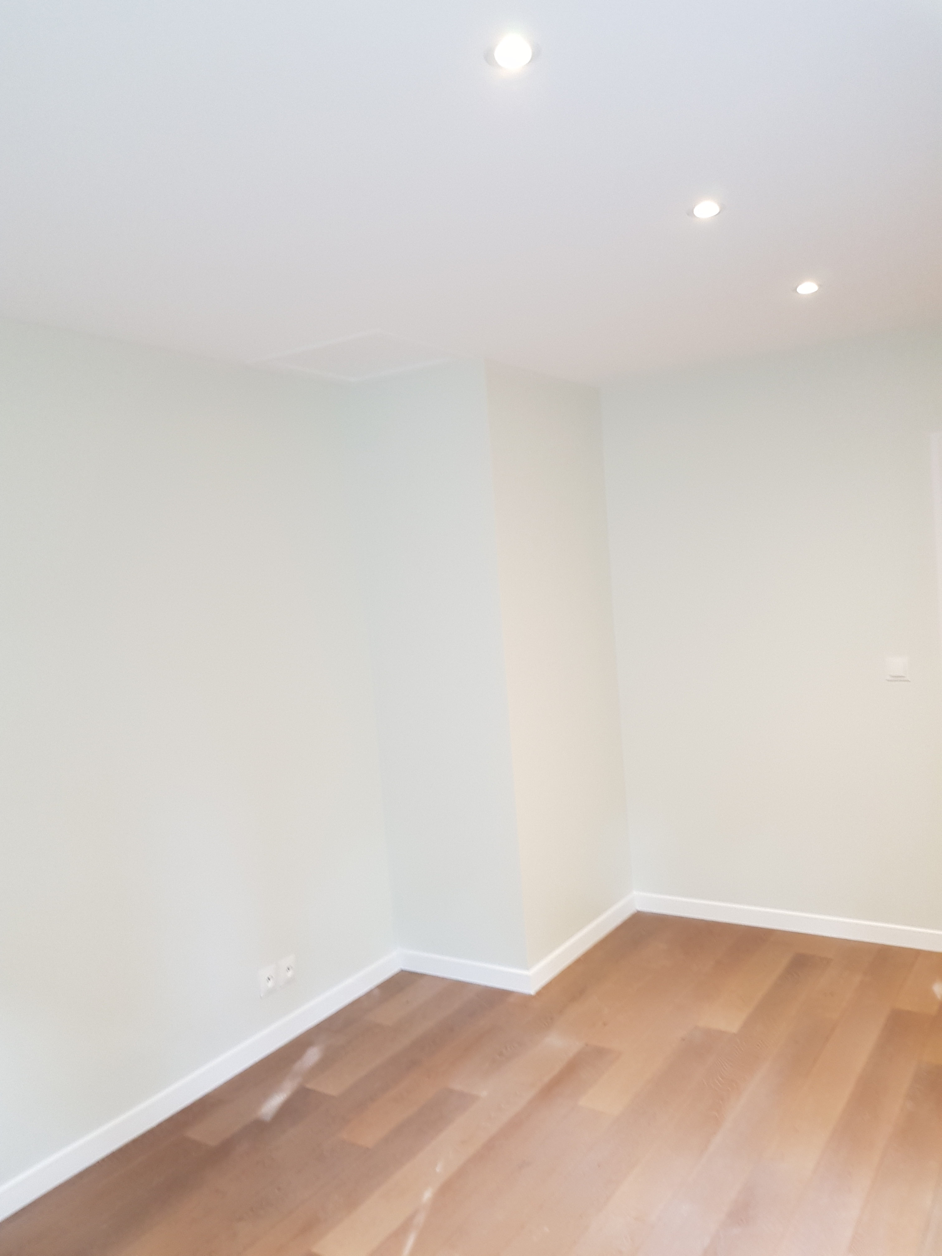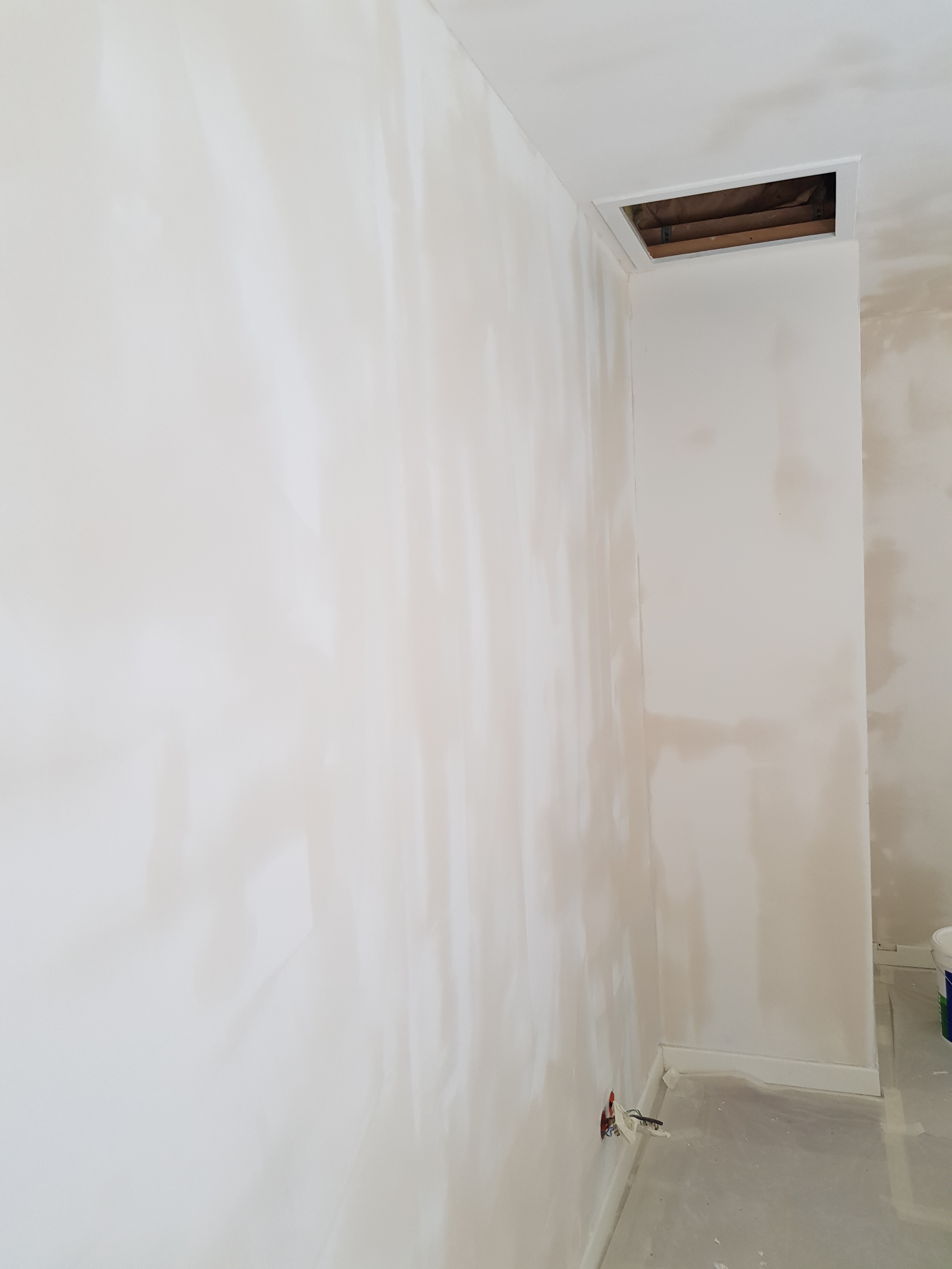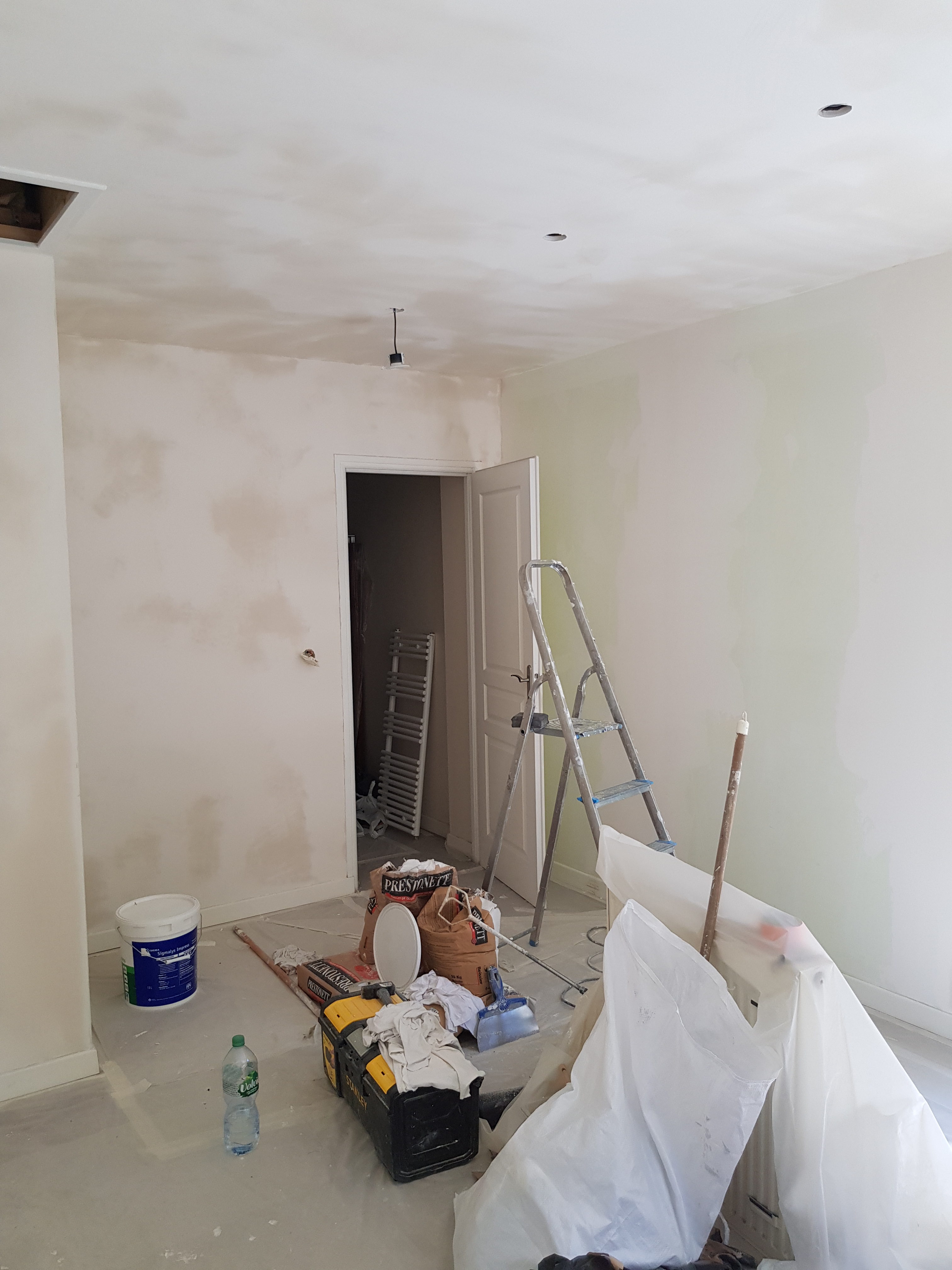Révisons de l’ensemble des enduits, les fissures et les imperfections sur les murs grattées, rebouchées et lissées. Ponçage et la peinture complète de la pièce à été refaite .